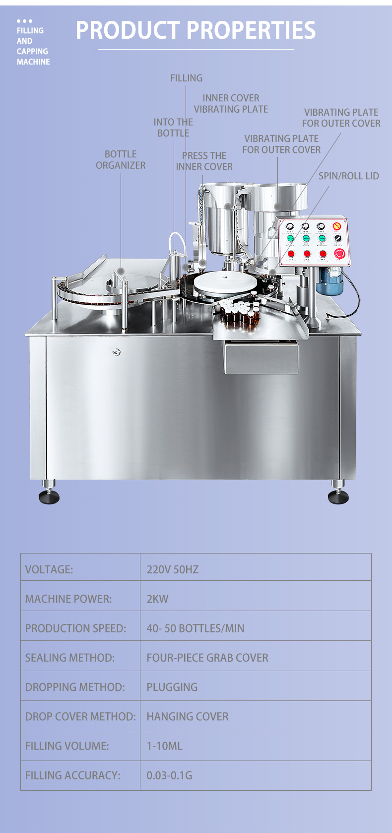 Pharmaceutical Injection Vial Filling Machine, Automatic Vial Filling Plugging and Sealing Machine for 7-100ml Aseptic Vial